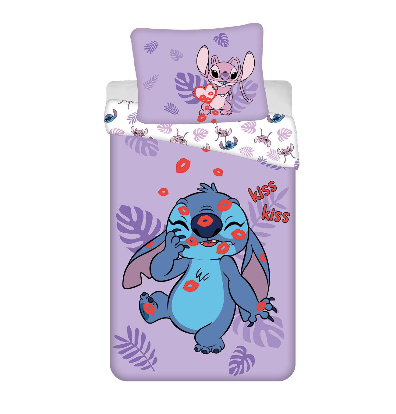 Pościel Lilo and Stitch Kiss 140×200 + 70×90 cm z 100% bawełny. Pastelowy motyw Stitch i Angel, zamek błyskawiczny. Idealna pościel dla dziecka.